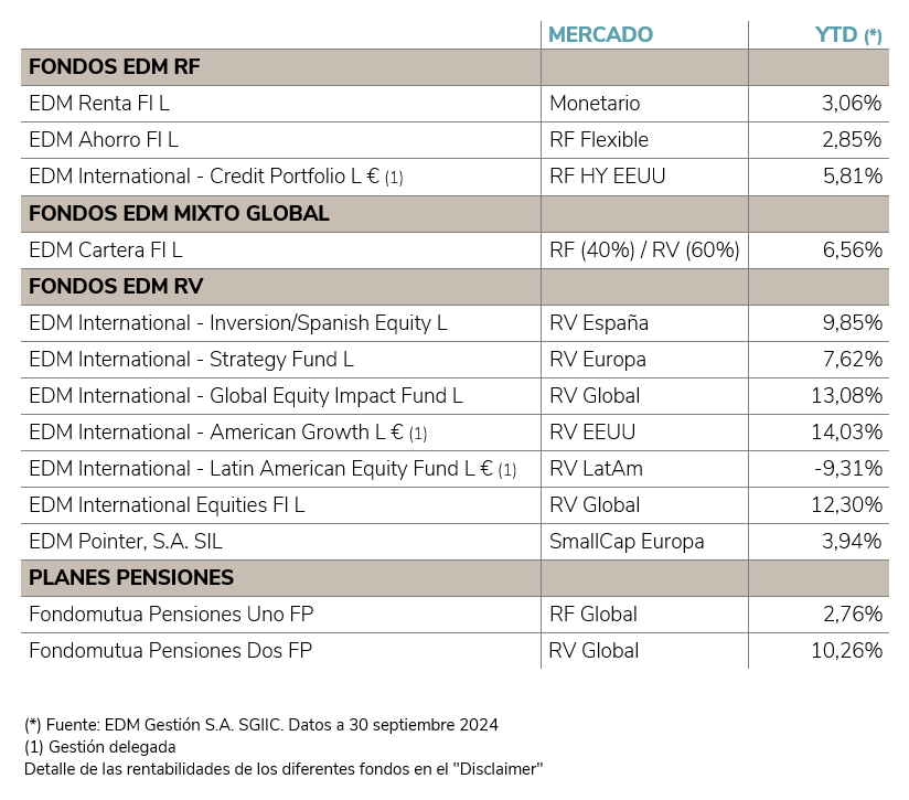 3) Dentro de la presente información aparecen datos referidos a rendimientos del pasado de los productos comentados. EDM Gestión, SA, SGIIC advierte que rentabilidades pasadas no son un indicador fiable de rentabilidades futuras.