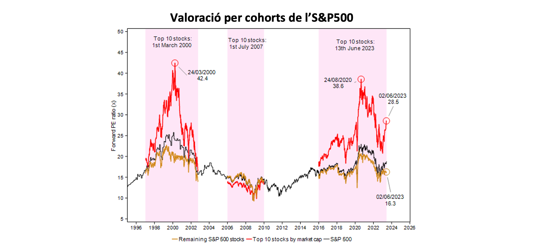 A curt termini, els mercats es mouen no tant per la bona evolució en els fonamentals, sinó per modes i narratives. La irrupció de la intel·ligència artificial, a través primer del ChatGTP, aplicació d’OpenAI, ha servit per a donar “momentum” de nou a les empreses tecnològiques, que han rebotat amb força després de les igualment fortes caigudes de 2022. Encara és aviat per saber l’abast d’aquests nous desenvolupaments tecnològics que han de ser un nou impuls per a la millora transversal de l’economia en múltiples sectors.