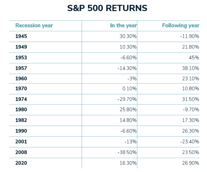 Table 1. S&P 500 returns in recession years.