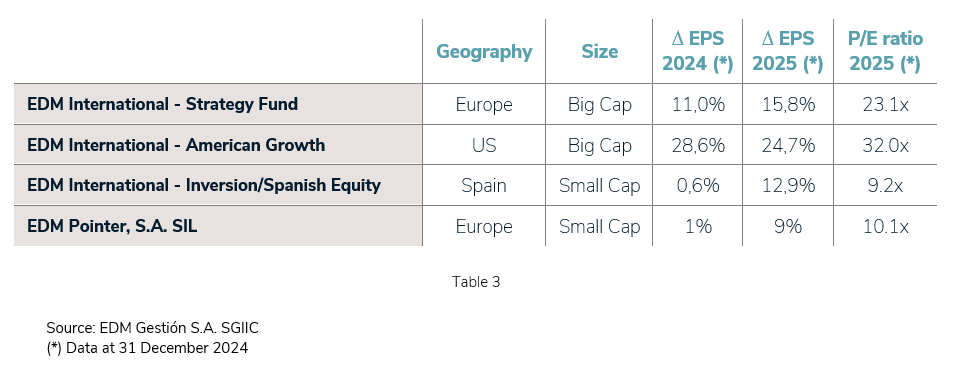 - Confidence that businesses (EPS) will continue to register growth in 2025, in line with historical trends;